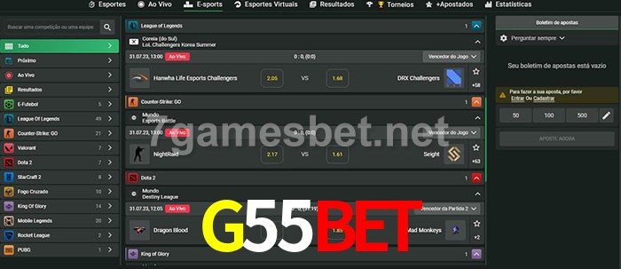 A aposta G55Bet oferece aos jogadores a experiência mais conveniente de apostas em eSports!